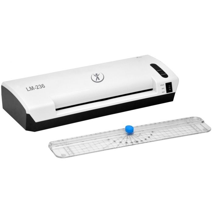LM-236 - недорогой и простой в работе ламинатор формата А4. Предназначен в основном для ламинирования объявлений, указателей, меню, пропусков, бэджей и другой печатной продукции. Отличный выбор для дома, офисов и организаций с небольшим объемом работ. В комплект к ламинатору входит резак для бумаги А4 (длина реза 305 мм).