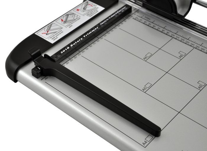 KW-triO 3018 (или KW-triO 13018) - роликовый резак А4 формата от компании KW-triO. Профессиональная серия резаков: прочная конструкция с широким металлическим столом, удобной разметкой, автоматическим прижимом стопы бумаги во время реза и подвижным упором. Оборудован креплением для настенного размещения. Подойдет для офисов и организаций со средним и большим объемом работ.