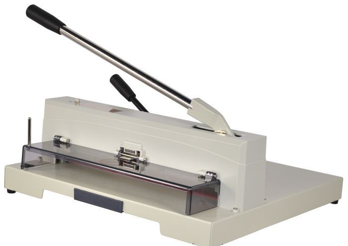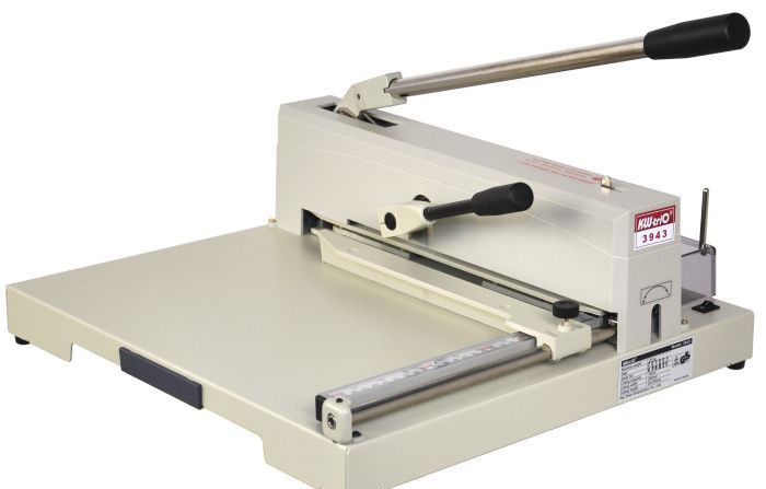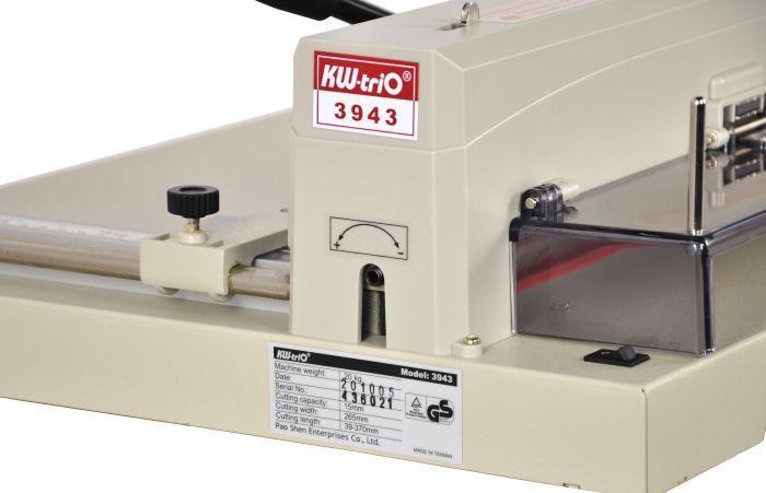 Настольный резак гильотиного типа KW-triO 3943 с цельным металлическим корпусом, профессиональное решение для офисов минитипографий. Используется для резки различных бумажных бланков, визиток и фотобумаги. Оптимальное соотношение цена/качество. Имеет подсветку линии реза. Зажим стопы производится с помощью специальной ручки - быстродействующего прижима, создавая давление на стопу, что позволяет сделать качественный рез стопы бумаги до 15 мм толщиной. Длинна реза составляет 370 мм. При открытом защитном экране из защитного ABS пластика со специальной системой блокировки ножа, нож удерживается в безопасном верхнем положении.