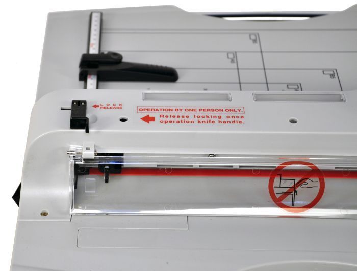KW-triO 3948, как правило, используют для резки различных бумажных бланков, визиток, а так же фотобумаги. Зажим стопы производится автоматически в процессе реза с помощью быстродействующего прижима, создающего давление на стопу, что позволяет сделать качественный рез стопы бумагу толщиной до 5 мм. Длина реза составляет 360 мм. При открытом защитном экране из ударопрочного ABS пластика со специальной системой блокировки ножа, нож удерживается в безопасном верхнем положении.