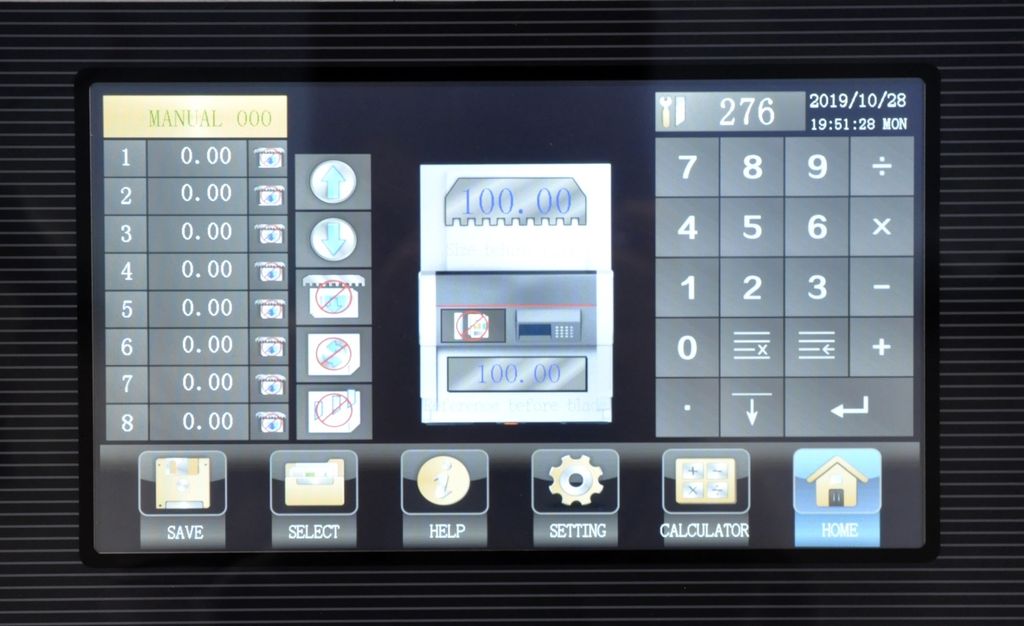 BW-4908 – новая линейка гильотин Boway, с механическим приводом лезвия (электромотор + редуктор) и полноцветным сенсорным LCD для удобства настройки и программирования. Прижим бумаги с электроприводом и регулировкой усилия. Возможность автоматической выдачи бумаги после реза. Полностью переработан привод затла: теперь затл двигается по двум направляющим, которые находятся по краям, а стол не имеет прорези посередине. BW-4908 может использоваться как основная в небольших типографиях, или как вспомогательная для подрезки уже готовой продукции. Модель имеет все необходимые современные системы блокировки для защиты рук оператора. BW-4908 отличается от BW-4608 не только высотой стопы бумаги, которую она может порезать, но и большей длиной реза.