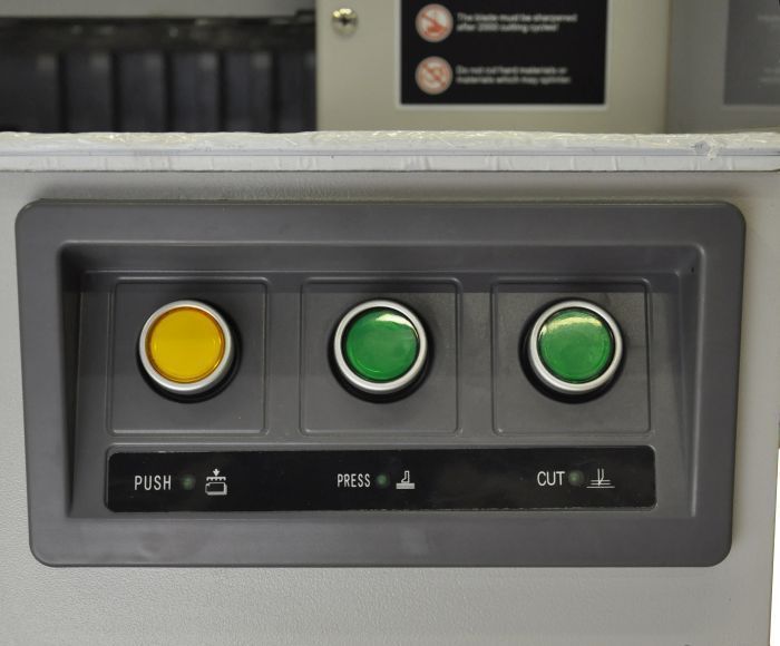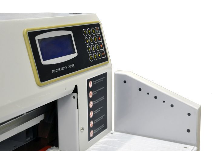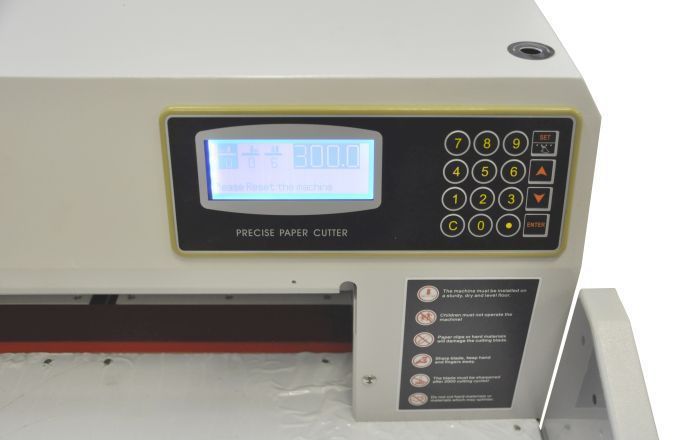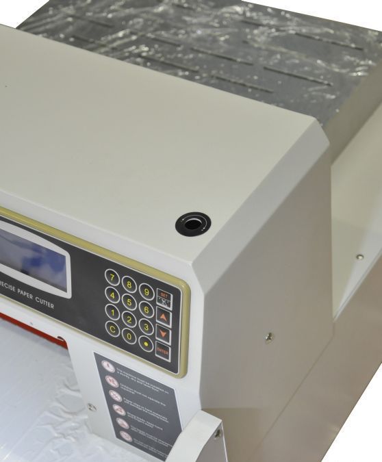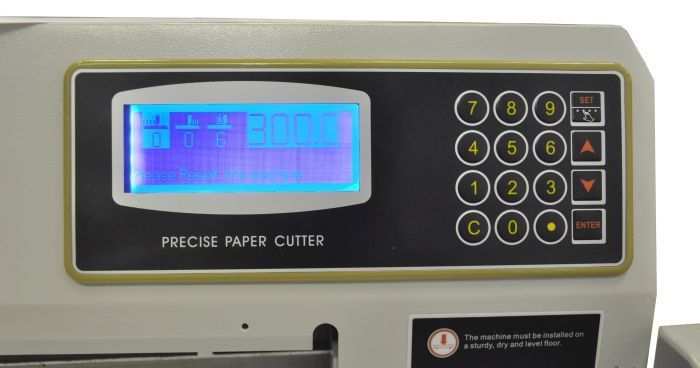 - Микропроцессорная система программирования гильотины на разные размеры реза.