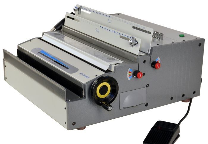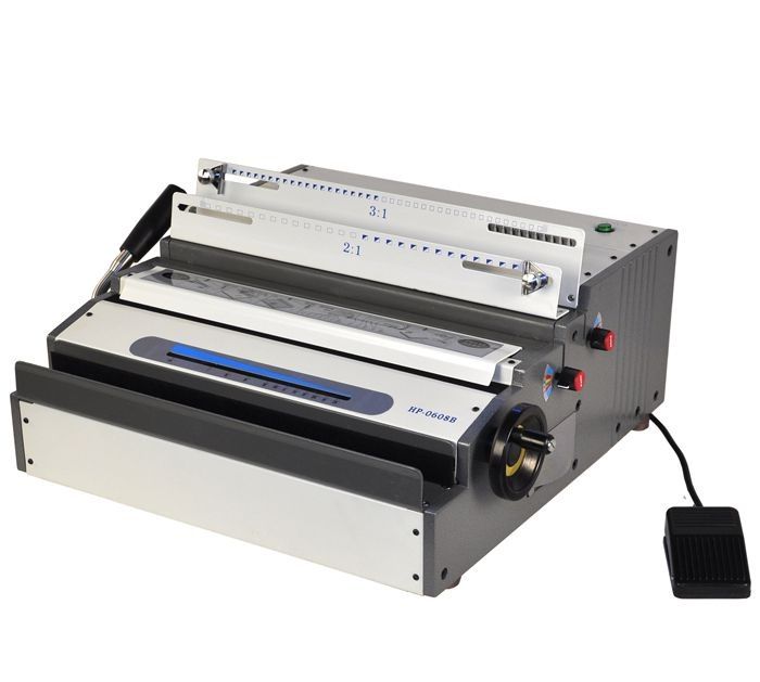 Профессиональная переплетная машина HP0608B на металлическую пружину в металлическом корпусе от фирмы Rayson c приличным запасом мощности. На этой машине Вам будут доступны оба шага для металлических пружин «2:1» и «3:1». Пробитие отверстий в бумаге производится при нажатии кнопки на корпусе или напольной педали. Пробивает квадратные отверстия.