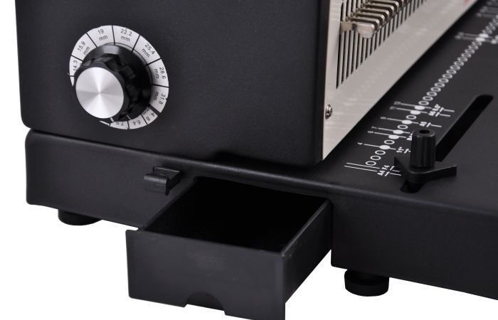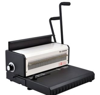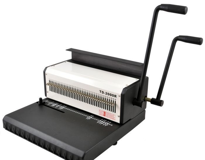 TD-2000R - это переплетная машина на металлическую пружину от компании Rayson с широким рабочим столом и функцией отключения ножей перфорации. Надежная модель брошюратора, с помощью которой можно переплести до 120 листов, оснащена ручкой для перфорации отверстий в бумаге и отдельной ручкой для сжатия пружины. Литера «R» говорит о том, что машинка пробивает круглые отверстия. TD-2000R подойдет для компаний, организаций и типографий со средним и большим объемом работ.