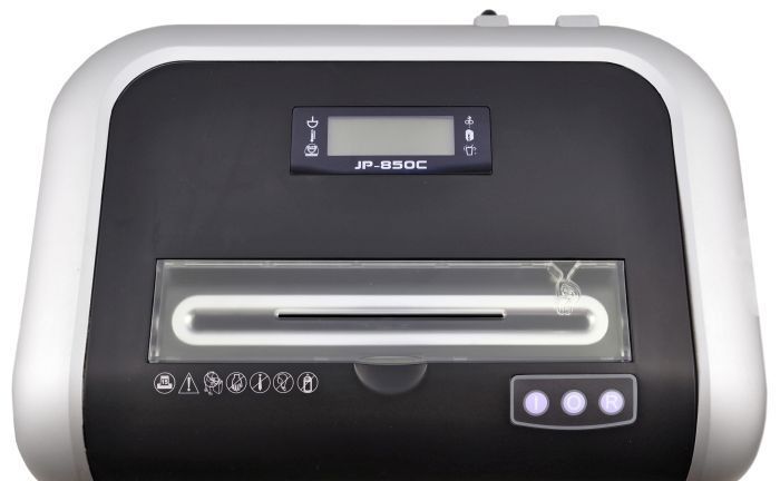 Уничтожитель JP-850C от компании Jinpex подходит для работы в офисах, имеет высокую степень секретности, режет на кусочки 2х10 мм.
